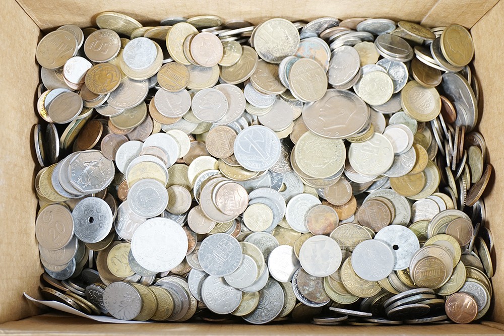 Doos met ca. 10 kilo eenvoudige wereldmunten.