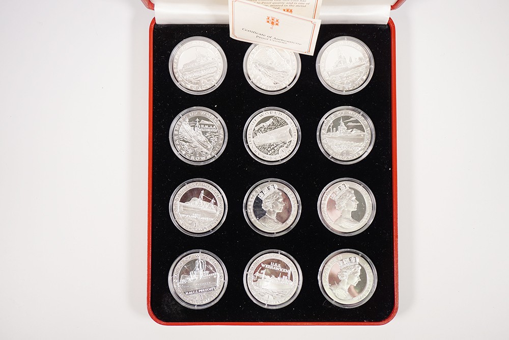 Gibraltar: Lot (12) 1 Crown 1993 Warships of World. Silver crownsize (Pobjoy Mint). Proof in cassette.