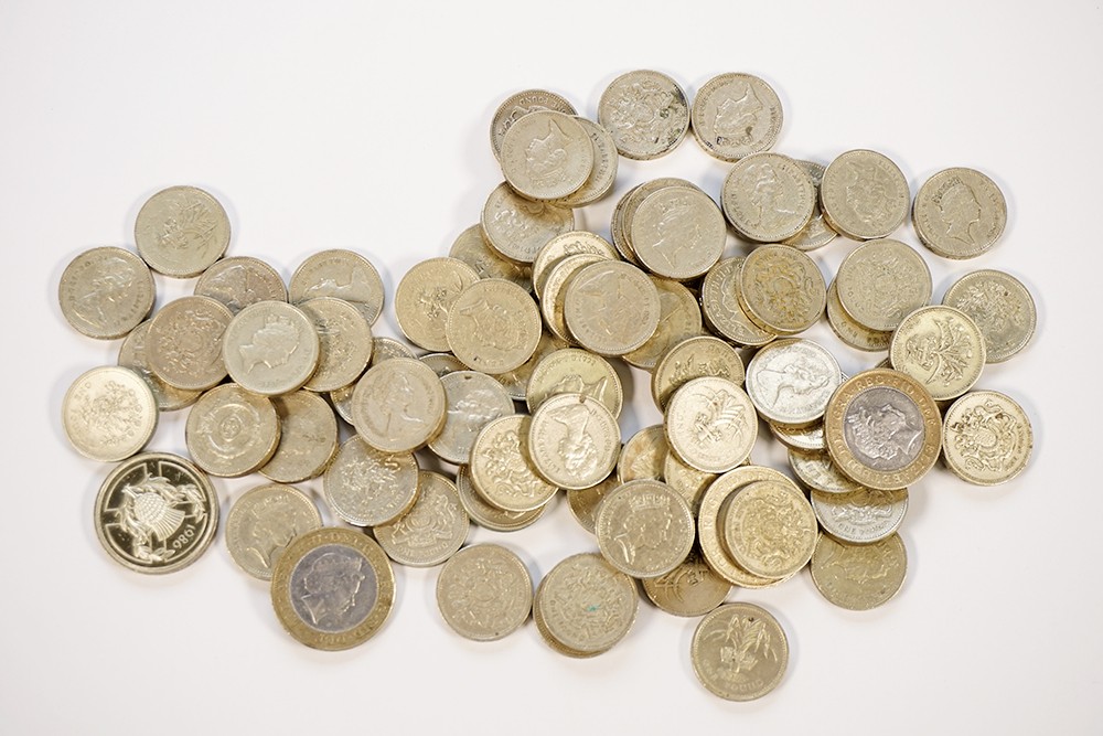 Blikje ‘Zeeuwse Babbelaars’ met Engelse ponden: 71 x £1 en 4 x £2. Totaal: UK£ 79.