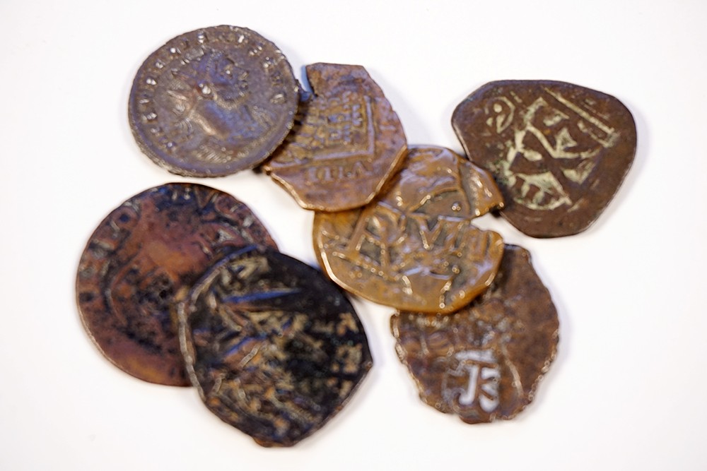 Lot (7) Mixed lot (3): Aurelianus (270-275), AE antoninianus, Siscia (Rv. Jupiter handing globe to Aurelianus); Constans II, follis, Constantinople (Rv. Busts of the 3 associated emperors, large countermark (monogram 35) below); Heraclius, 629-630, AE follis overstruck on follis of Phocas (?). Fine and about VF.; 1½ Real ( Real e meio) met klop P onder de kroon. Klop en munt zeer goed.; 2x 4 Maravedis met klop VIII en 1641 met kroon. Gemiddeld fraai. 4 Maravedis. Klop gekroond jaartal 1641 en Kz VIII. De Mey 38.1.43. Slagbarst. Zfr.