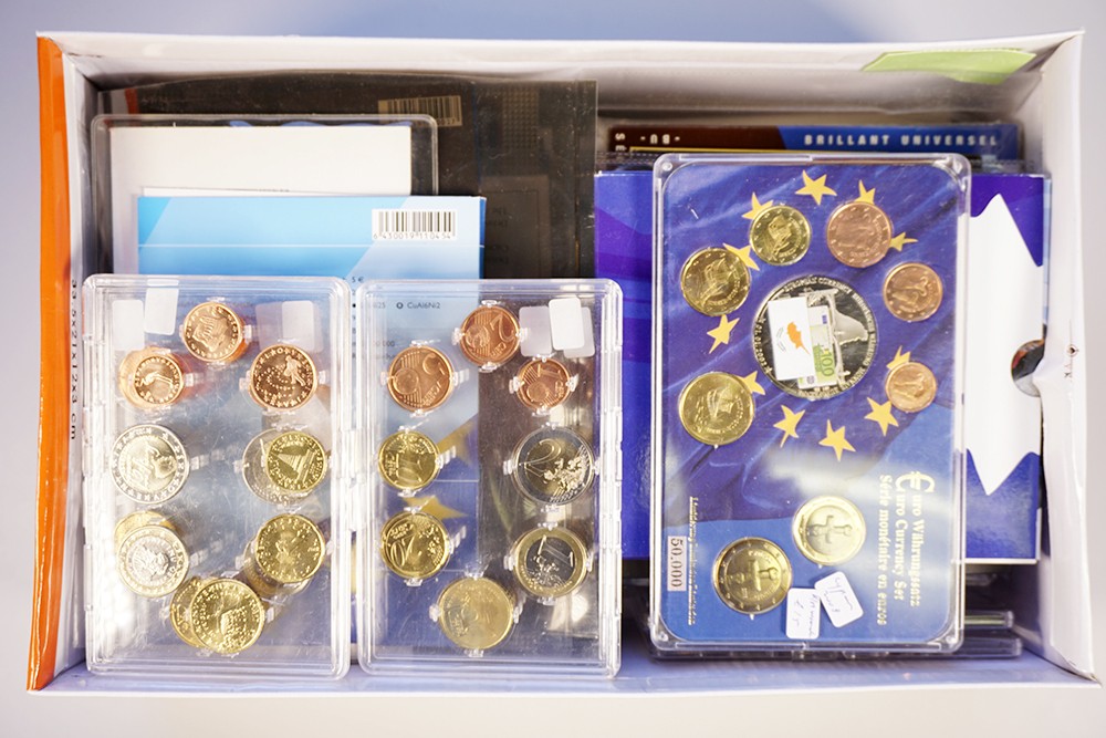 Doos met ruim 30 stuks FDC-sets van ondermeer België, Italië, Ierland, Portugal en Tjechië.