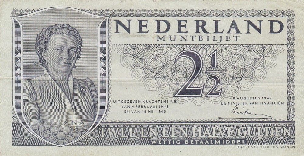 2½ Gulden 1949 Juliana [# AAA 004813]. Mev. 16-1a; AV 14.1b. Fraai.