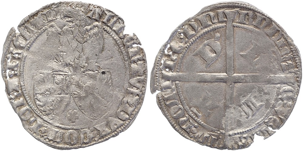 Groot met adelaar z.j. vdCh 7.12. Rand iets uitgebroken, overigens zeer fraai.