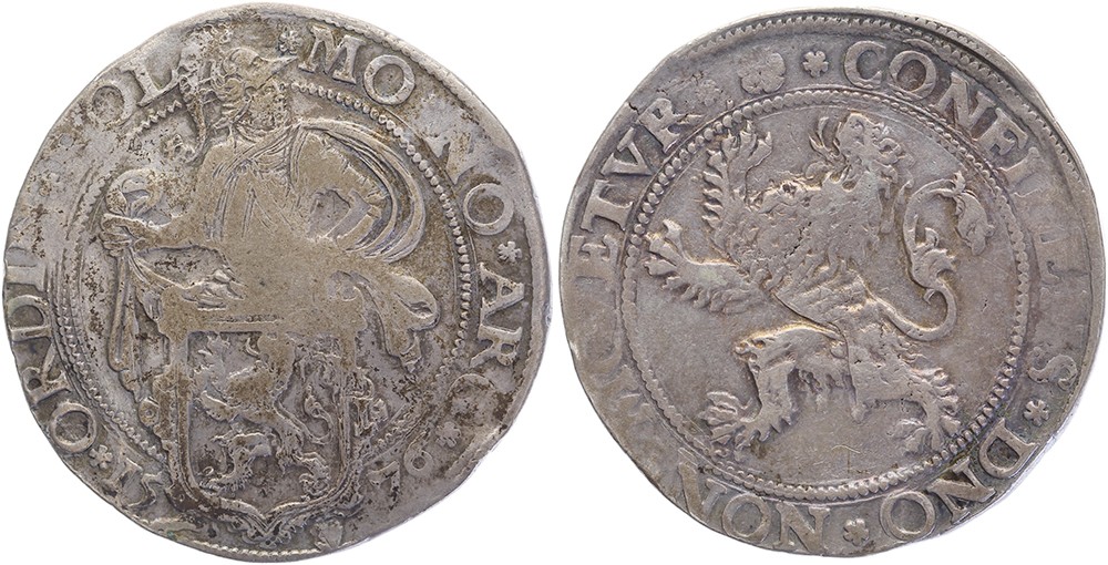 Leeuwendaalder 1576 op Hollandse voet interpunctie rozetje. Delm. 831; CNM 2.28.66; HPM 22. Ruim fraai bijna zeer fraai.