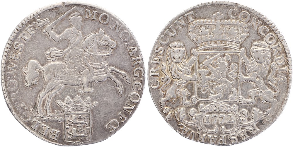 ½ Zilveren rijder of dukaton 1772. Delm. 1050; CNM 2.46.55; HPM 33. Ruim zeer fraai.