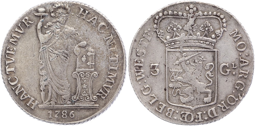 3 Gulden 1786. Delm. 1147; CNM 2.46.55; HPM 46. Bijna zeer fraai.