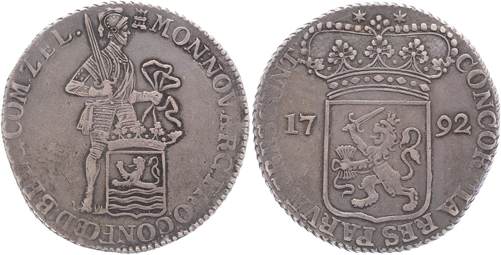 Zilveren dukaat 1792. Delm. 976; CNM 2.49.50; HPM 50. Donker patina. Zeer fraai.