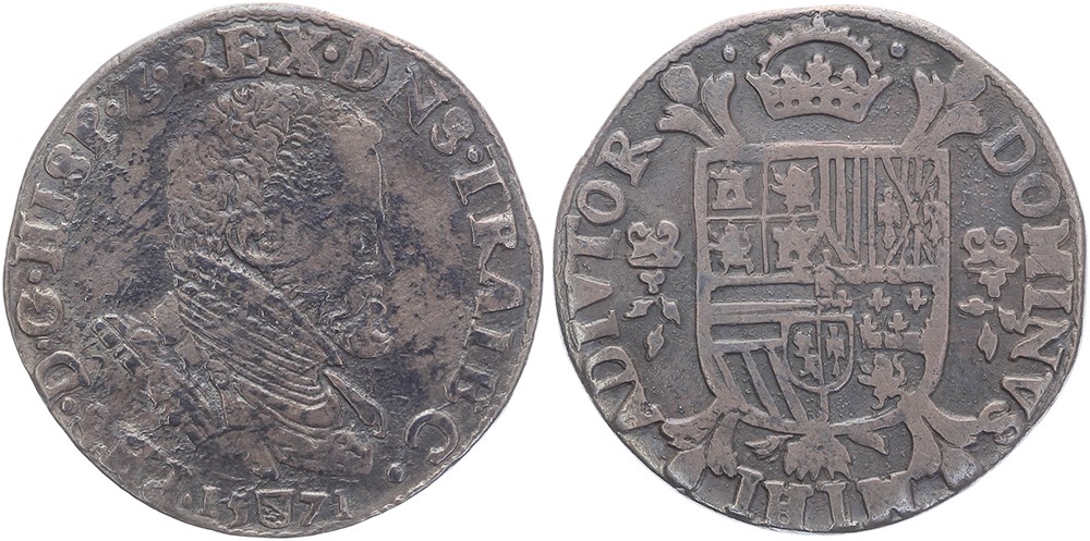 1/5 Philipsdaalder 1571. GH 212-16a; CNM 2.43.8. Donker bijna zeer fraai. Ex veiling 22 Laurens Schulman, april 1999, nr. 383