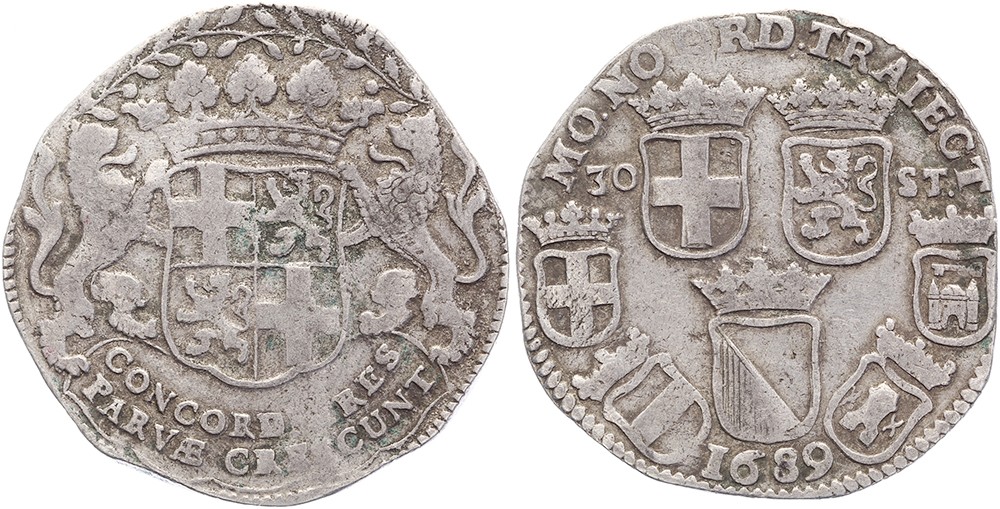 Daalder van 30 stuiver 1689. Delm. 1086; CNM 2.43.109; HPM 67. Ruim fraai bijna zeer fraai.