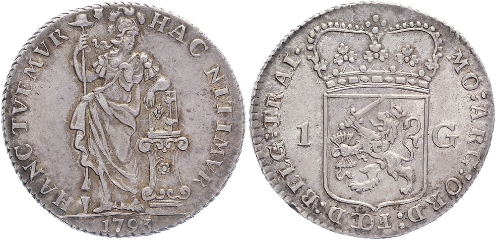1 Gulden 1793. Delm. 1182; CNM 2.43.121; HPM 73. Patina. Prachtig.