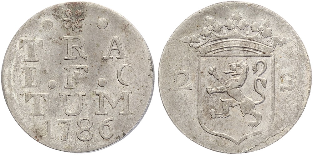Dubbele stuiver 1786. CNM 2.43.140; HPM 87. Mogelijk een contemporaine vervalsing! Zwakke slag. Zeer fraai.