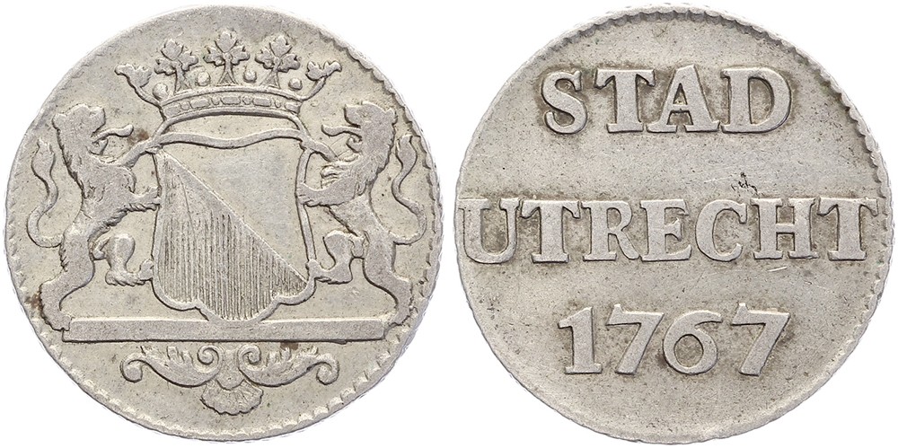 Duit 1767. Afslag in zilver van 3,17 gram. PW 5113.1; CNM 2.44.22; HPM 20.3. Zeer zeldzaam. Zeer fraai.
