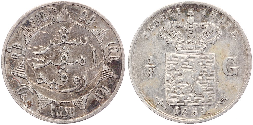 ¼ Gulden 1854 mmt. zwaard. Scholten 749. Prachtig.