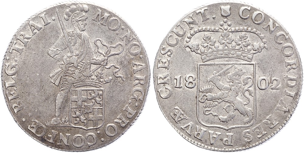 Utrecht. Zilveren dukaat 1802. Sch. 71. Ruim zeer fraai bijna prachtig.