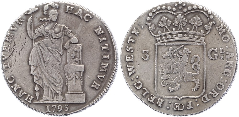West-Friesland. 3 Gulden 1795. Sch. 85cc. Ruim fraai.