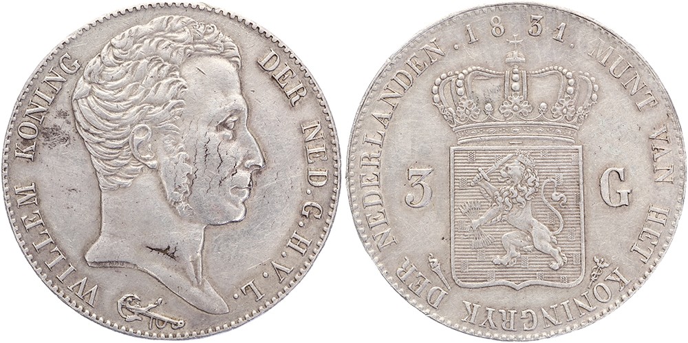 3 Gulden 1831 Utrecht mmt. fakkel Sch. 249 Zeer fraai