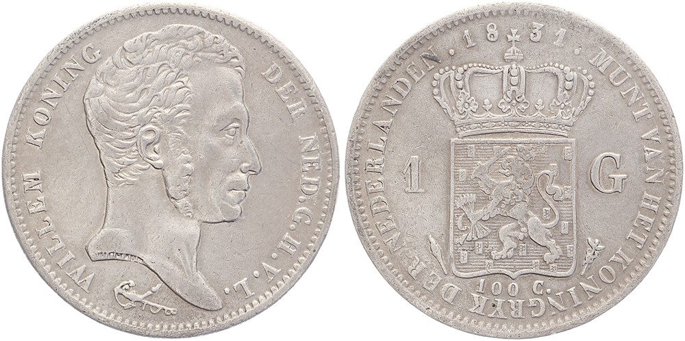1 Gulden 1831 uit 1821 mmt. fakkel Sch. 266a Zeer fraai