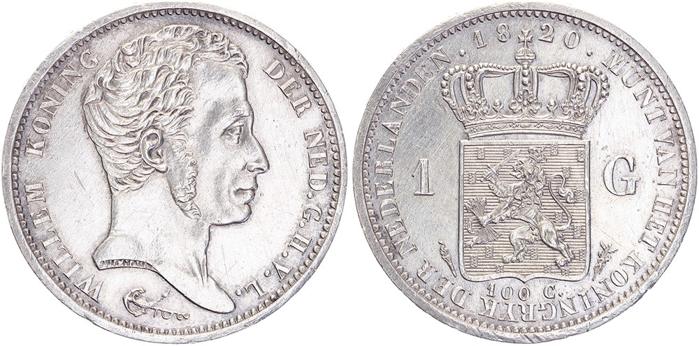 1 Gulden 1820 Utrecht mmt. fakkel Sch. 275 Prachtig