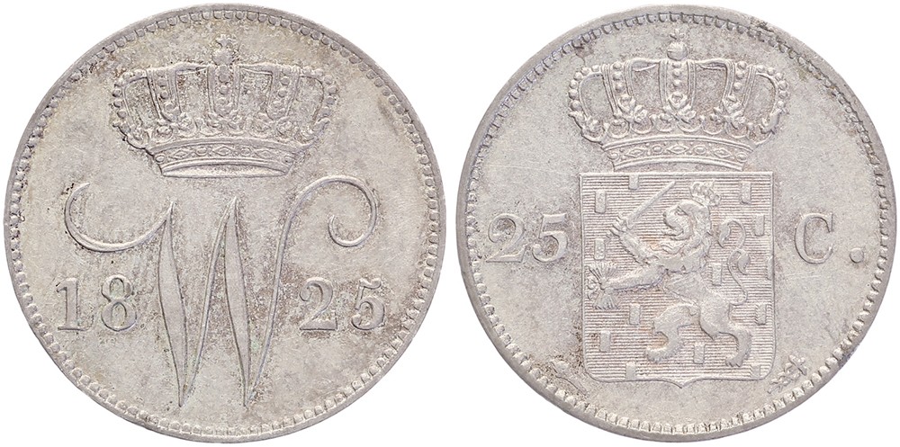 25 Cents 1825 Utrecht mmt. fakkel Sch. 289 Prachtig