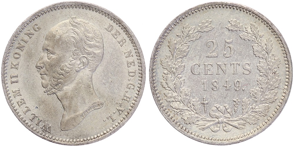 25 Cents 1849 mmt. zwaard Sch. 533 Prachtig