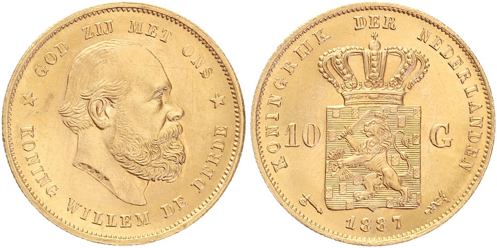 10 Gulden 1887 mmt. bijl Sch. 556 Prachtig