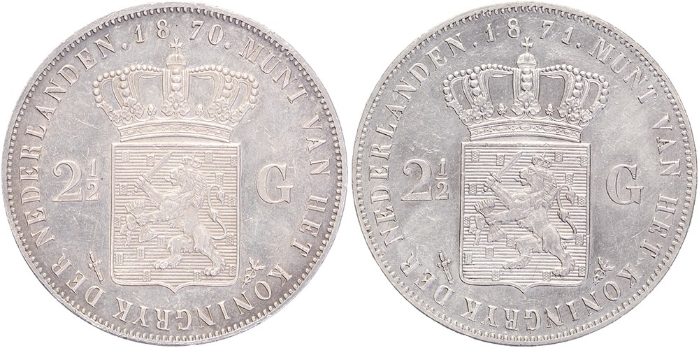Lot (2) Rijksdaalder 1870 en 1871 Sch. 596 en 597 Zeer fraai