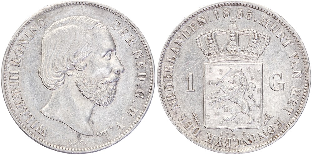 1 Gulden 1855 mmt. zwaard Sch. 608 Ruim zeer fraai