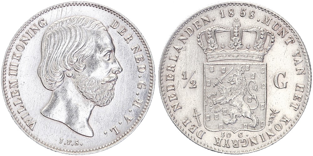 1/2 Gulden 1858 mmt. zwaard Sch. 625 Prachtig