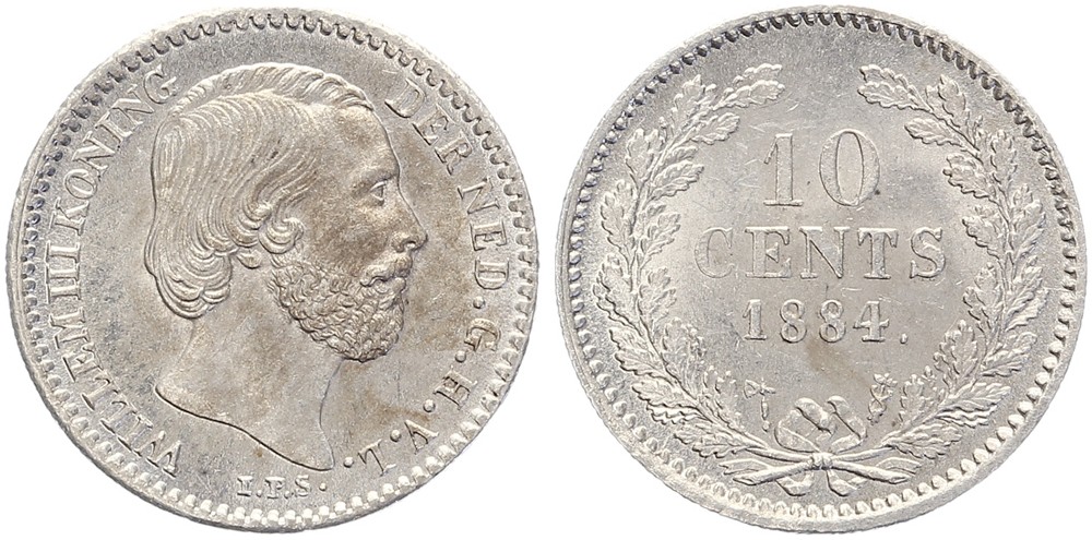 10 Cents 1884 mmt. bijl Sch. 661 Prachtig