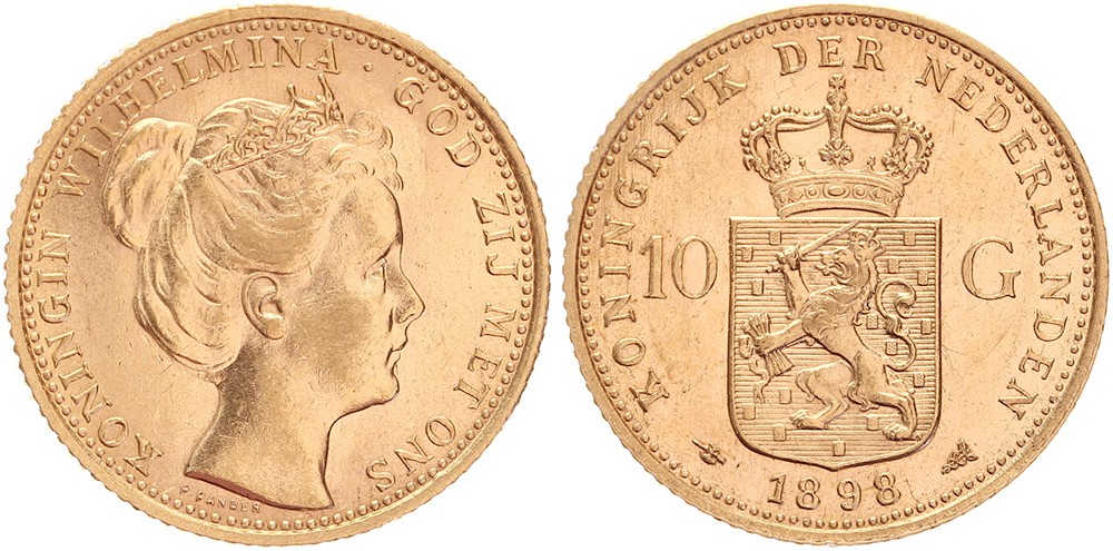 10 Gulden 1898 mmt. hellebaard Sch. 744. P. PANDER Zfr / prachtig