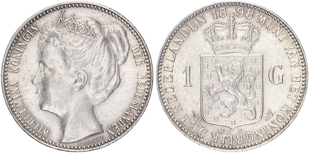 1 Gulden 1898 mmt. hellebaard Sch. 802 Bijna prachtig