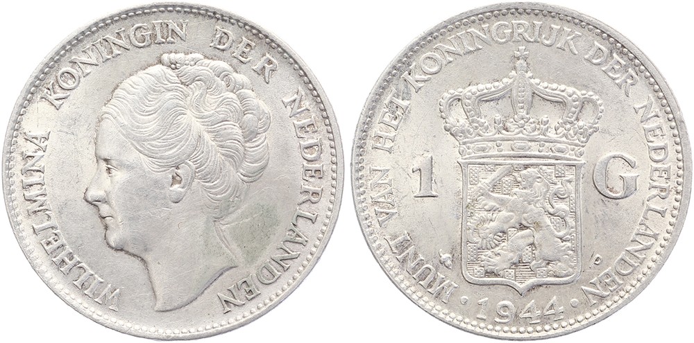 1 Gulden 1944 P mmt. eikel Sch. 1055a. Doorlopend omschrift Zfr / prachtig