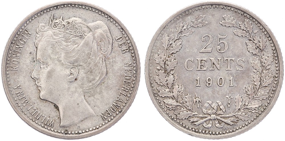 25 Cents 1901 mmt. hellebaard Sch. 854bis Ruim zeer fraai