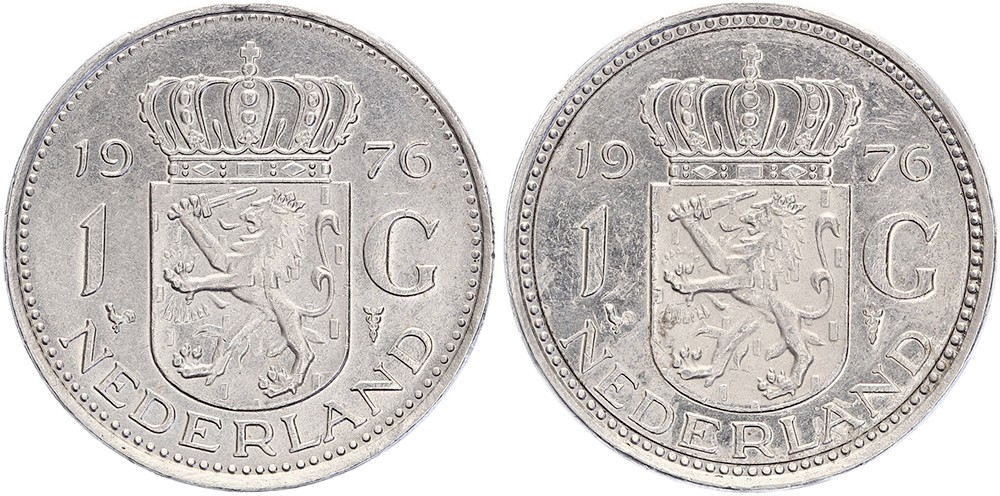 Vakkundig gemanipuleerde nikkelen Julianagulden 1976 met twee keerzijden [5,78 gram]. Prachtig.