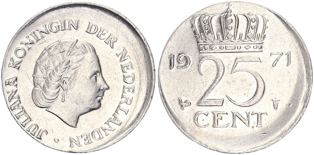25 Cents 1971. Circa 15% excentrisch geslagen. Geen kartelrand [2,99 gram].