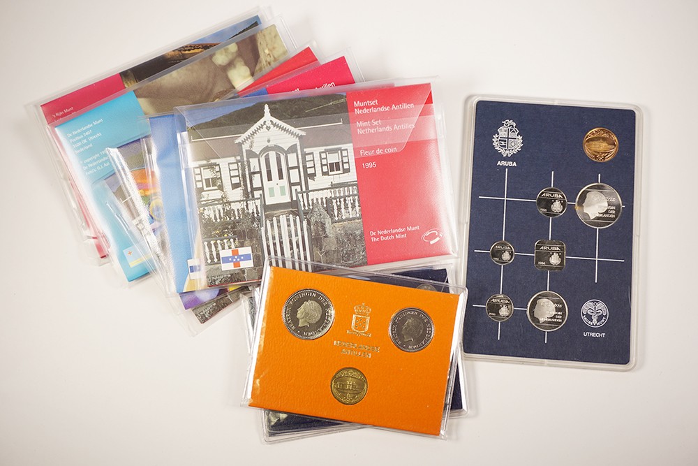 ‘Van Lier’ schoenendoos met 73 FDC-setjes Aruba en Nederlandse Antillen.