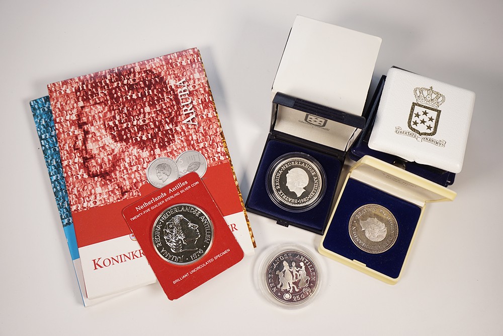 Schoenendoosje met zilveren herdenkingsmunten Aruba & Nederlandse Antillen (12).