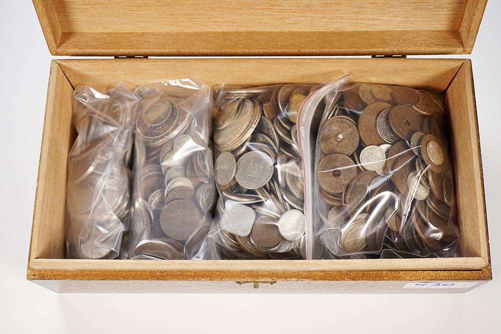 Houten kistje Overzeese Gebiedsdelen: Nederlandse Antillen, Suriname, Curaçao, Aruba en Nederlands Oost-Indië (V.O.C. + koninkrijk). Veel zilver.