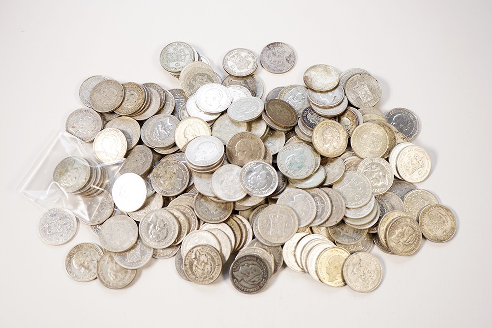 Blikje halve guldens Wilhelmina type 1921-1930 (204), w.o. 5 x 1929 variant. Netto zilver: 724 gram.