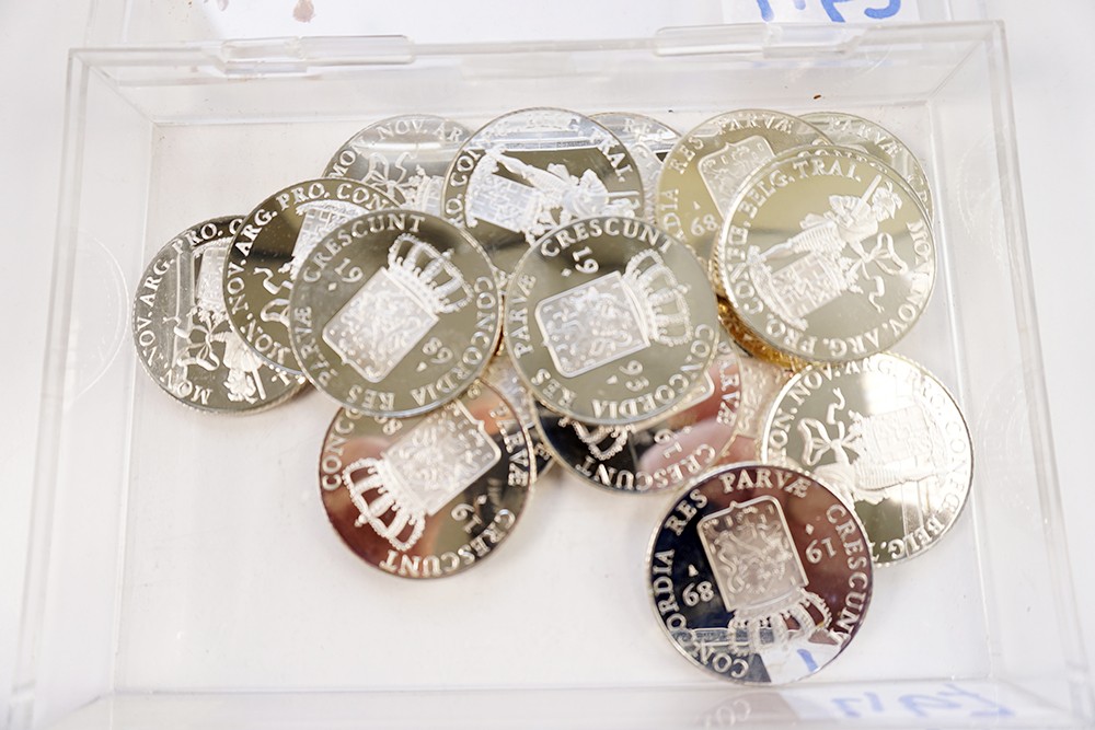 Transparant doosje met 17 zilveren dukaten type 1989-1993.