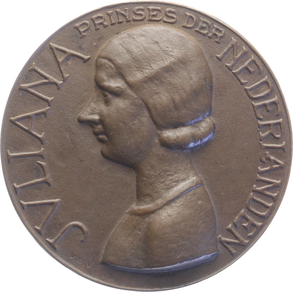 (1927) Juliana, prinses der Nederlanden. Borstbeeld naar links. / Blanco. Æ gegoten 70. Gerrit van der Veen. Prachtig.