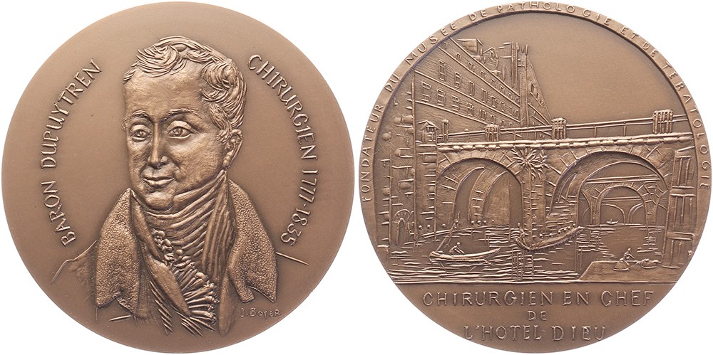 1973 Baron Dupuytren, fondateur du musée de pathologie et de teratologie. Borstbeeld iets naar links. / Brug over de Seine bij Ile de la Cité. Æ 80. J. Boyer. Prachtig.