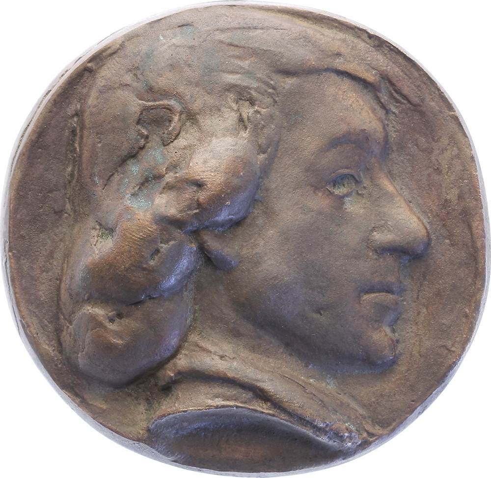 z.j. Werk- of proefmodel bronzen gietpenning. Hoofd jongeman naar rechts. Volgens inzender werk van H.J. Dannenburg. Zeer fraai.
