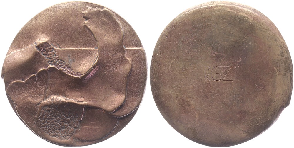 1977 Zonder titel. Abstracte weergave ‘zonder titel’. / Logo VPK en initialen medailleur. Æ gegoten ± 75. Tilanus pag. 379-381. Ger Zijlstra. Prachtig.