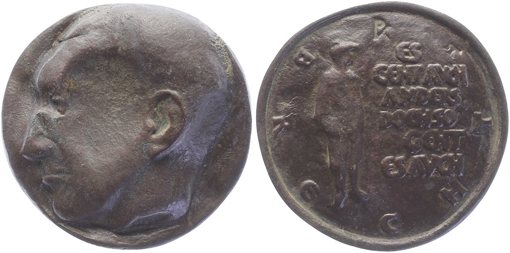 (1978) Bertolt Brecht. Hoofd van Brecht naar links. / Zesregelig opschrift naast staande figuur. Æ gegoten ± 59. Tilanus pag. 391-392. Geer Steyn. Prachtig.