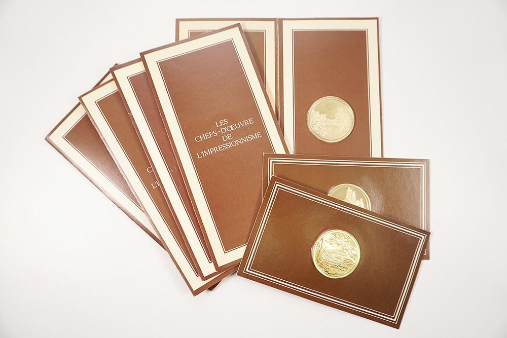 De “Meesterwerken van het Impressionisme”. 50 Prachtige penningen, allen vervaardigd uit sterlingzilver 925/1000 en verguld met 24 karaat goud. 1600 Gram bruto.