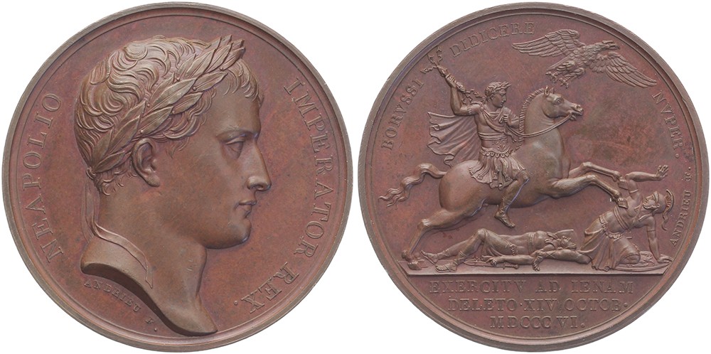 1806 Bataille de Jena. Tête Napoléon à droite. / Scène du bataille. Æ 40,6. Bramsen 537. Andrieu. Superbe.