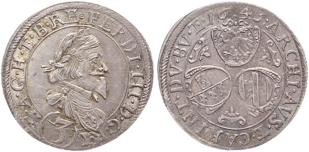 3 Kreuzer 1643 St. Veit. KM 835. Vorzüglich.