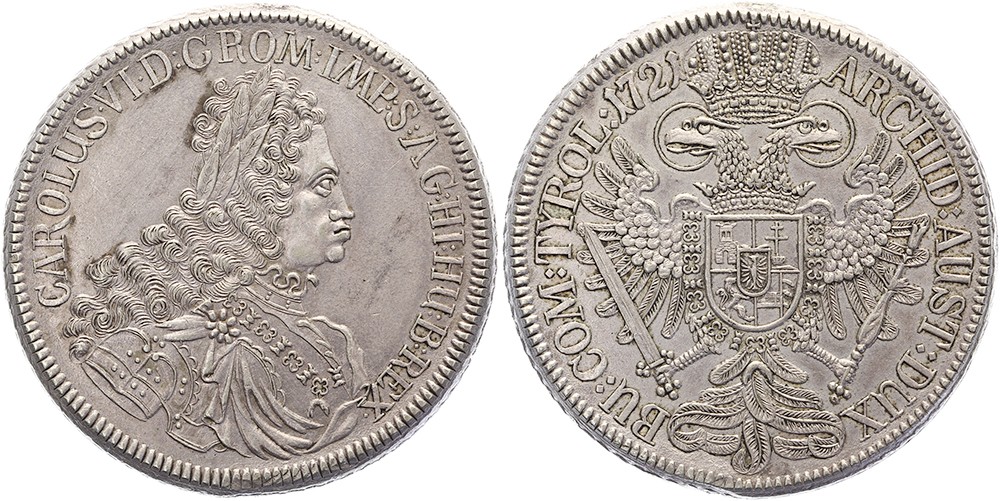 Thaler 1721 Hall. Davenport 1053; KM 1594. Nachprägung (Lauerkopie ?). Henkelspur. Fast vorzüglich. Ex veiling 8 Laurens Schulman, april 1992, kavel 1616