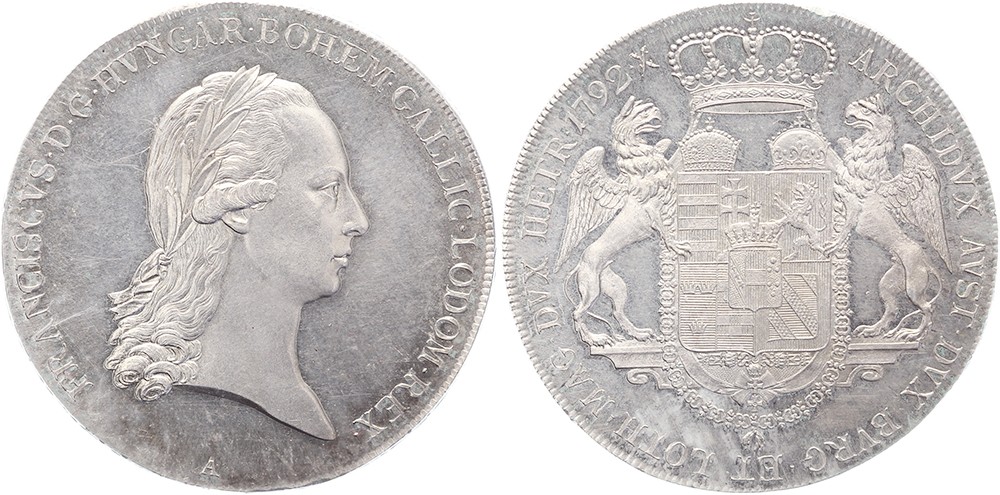 Thaler 1792 Wien. Davenport 1176; J. 102; KM 2157. Henkelspur (traces of mounting). Selten. Fast Stempelglanz. Ex Auktion 44 H.D. Rauch, Februar 1990, Los-Nr. 3619